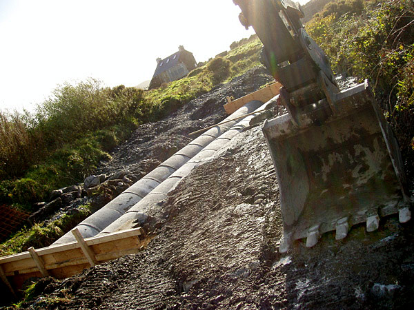 This time the rain has been really heavy at times (well, we were working on a roof so what did we expect?) and the new road and bridge which we thought was far too big while it was being constructed has been shown to work: