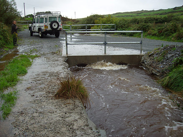 and after a day's heavy rain this is the new bridge doing it's stuff - the water here is more than a metre deep - that's why we had to have the LandRover to reach the house originally!: